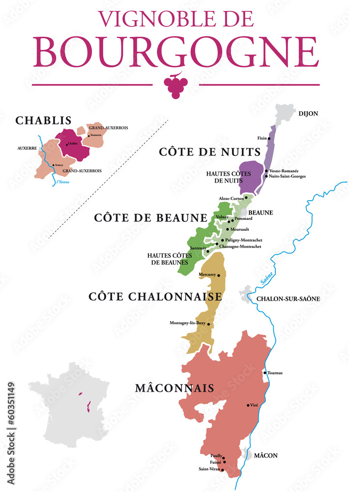 Der Wein ist burgunderähnlich etwas körper- und bukettreicher jedoch mit weniger Säure. Obwohl diese Region als ein wichtiges kommerzielles und industrielles Zentrum gefunden wird ist dies auch für die Produktion von Burgunderweine bekannt. Im Mittelalter war die.